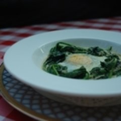 菠菜与鸡蛋本是家常食材,加上淡奶油、芝士却出奇的美味。嫩黄的鸡蛋在青嫩的菠菜印衬下犹如翡翠黄玉。菠菜柔软爽滑,沾些许汤汁,浓郁的奶油与芝士味在舌尖缠绵跳跃,幸福的滋味油然而生。