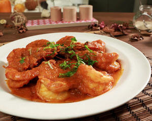 茄酱明虾,浓浓的茄汁搭配肉质肥厚,味道鲜美的明虾,口感细腻,清甜爽口,美味无边,让人久久不能忘怀,而且茄酱明虾美味不说还营养健康,是难得的美味健康菜肴!
