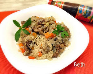 啤酒鸡肉蘑菇饭,我选了台啤的蜂蜜啤酒代替高汤或水,这款啤酒有大麦芽、蓬莱米、龙眼蜂蜜等,可以增加饭的香味。又用新鲜的甜菊取代糖,保持食物甜度,但不会增加身体负担。与家人一起吃得开心,开心的吃。
