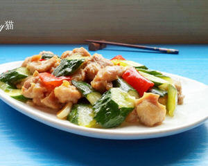 这道青瓜鸡球的做法非常简单,也是一道营养丰富的菜肴。这道菜选用了鸡腿肉,因为鸡腿的活动量是最大的,所以它的肉质紧实有弹性,吃起来口感非常好,并且这道是低脂肪,高蛋白的一道菜肴,荦素搭配合理,特别适合需要保持身材。