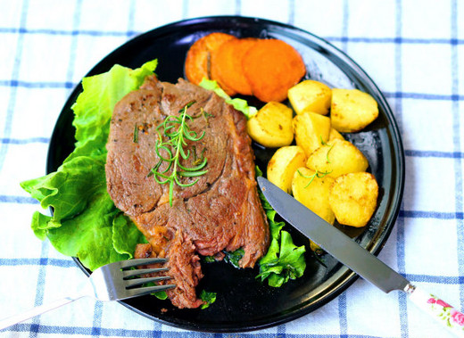 迷迭香煎牛排的介绍:迷迭香可以说还一种和各种肉类白搭的食材,不仅能够提升肉类的香气,同时又带入了自己独特的味道。用来和牛排一起煎,牛排烹制的过程中迷迭香叶子也吸收了牛排的汤汁,同时香草本身在高温下快速收缩也产生了脆脆的口感,配合黑胡椒碎和肉一起下肚简直是种快乐的享受哦!