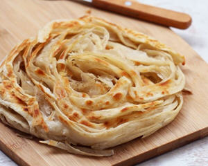 在家制作这个椒盐手抓饼的时候面皮上撒上椒盐后要用刀在面皮均匀的切开,注意面皮不要划断,然后在弄成面团,在擀成饼子,这样煎出来手抓饼一条一条的,用手抓一下都松散开了,相当好吃的。