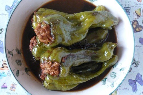 地铺行网为您讲解,在家做这道辣椒塞肉的时候可以把青椒去蒂掏空,酿如肉馅。口上抹点淀粉,这样煎青椒的时候,肉汁不易爆锅,损伤各位纤纤玉手。再有,甜铃椒之类体型较胖的“柿子椒”,可以用棉线绑一圈,在烹饪过程中,保护青椒不会扭到肥腰,导致皮开肉绽。