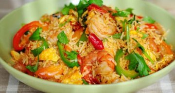 泰国海鲜炒饭怎么做?虾能放在炒饭里面吃吗?虾和咖喱的新吃法。这道泰式红咖喱海鲜炒饭颜色鲜艳,味道也是极好的。