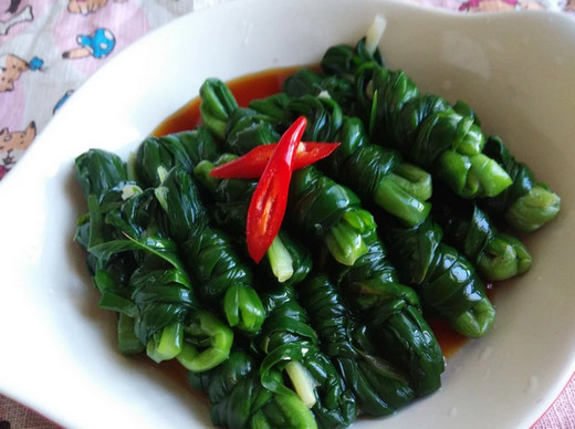 凉拌韭菜结介绍:天热了来一道高纤低脂的轻食料理凉拌韭菜结,制作非常简单,只需要把韭菜焯汤一下,然后打成结,最后淋上沙拉酱或者自制调味酱即可。非常容易上手,现在天气炎热,不仿为自己和家人来点凉拌菜吧。 凉拌韭菜结的做法请看下面地铺行网的讲解。