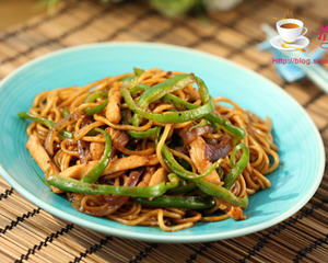 黑椒鸡丝炒面是标准的有菜有肉有主食的懒人餐,这盘炒面加入了一味特别的、一般中餐中不常用的调味料――黑椒汁,根根面条都渗透着香浓的黑椒味,味道更胜一筹, 侄女说吃出了西餐的高大上的感觉,完全不了口。