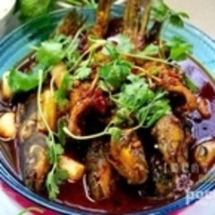 重庆来凤鱼的做法 第一步、把花鲢鱼收拾洗净,然后冲洗一下,再剁成块,加点料酒和盐腌制一下。 第二步、大葱切段、大蒜切片,泡椒和泡姜切末备用。 第三步、锅烧干水,下油烧热后,放入花椒、大蒜、 泡姜、泡椒、郫县豆瓣炒出红油。