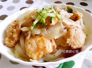 黑胡椒洋葱嫩鸡做法步骤简单,材料简单并且味道鲜美。洋葱最普通的蔬菜,而且具有诸多保健功效,例如去除风寒.防癌抗衰老.预防感冒等功能。大量的洋葱与鸡丁一起拌炒,再洒上黑胡椒粉提味,洋葱鲜甜鸡丁软嫩,不用几分钟就是一道下饭的佳肴。在营养食疗上被推崇为多功能的降脂降压抗癌的营养保健食品,享有菜中皇后的美称。