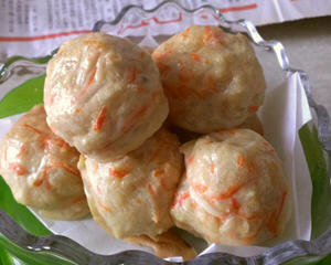 伪黄金章鱼烧,无油炸,简单快速。不用烤模 ,可当手指食物。香气满屋,大人小孩都很爱喔!这灵感是,想到妈妈都用低筋面粉+蛋来炸甜糕,用低粉吃起来不硬是软香的,而用烤箱烤,吃起来不腻,又健康。