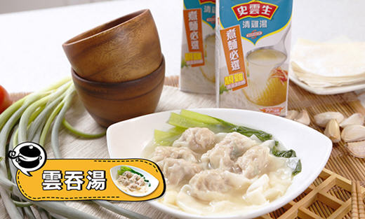 港式云吞汤介绍 偶而在家想吃些清爽的餐点,只要简单几样食材,自己亲手也能包出港式云吞汤的道地口感,主厨Irene选用史云生高汤取代调味料,不只显出肉馅的鲜美,还能在汤中喝到浓郁好滋味。