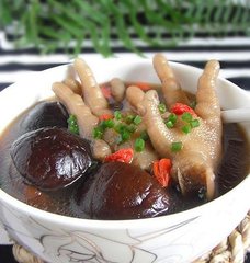 养颜凤爪汤是用鸡爪加上香菇还有枸杞一起炖至而成的一道美味,鸡爪含有十分丰富的胶原蛋白,对增加人体皮肤的弹性,和改变皮肤的性质有很大的益处。