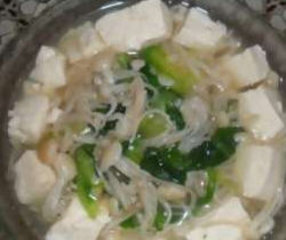金针豆腐翡翠汤的简单做法讲解。这道菜的用料是金针菇豆腐和小白菜,是一道做法简单快捷口味清淡的养胃清肠佳肴。好吃的金针豆腐翡翠汤怎么做请看地铺行网的详细教程。