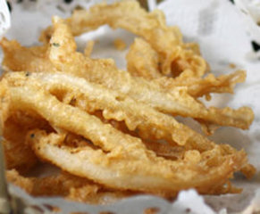 南瓜富含丰富的维生素,是很好的保健食物。南瓜烙是潮汕地区的著名小吃,刚炸好的南瓜烙外脆内软,带着淡淡的清甜,十分好吃。