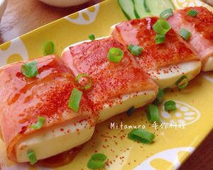 培根豆腐卷,用培根将豆腐卷起来,再两面香煎,培根的浓郁和豆腐的清爽,外酥内软,双重口感和滋味,有机会一定要品尝看看哦。