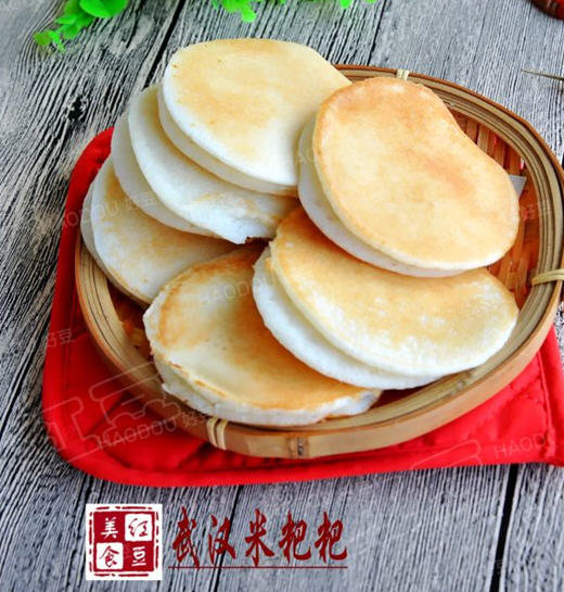 米粑粑是米磨成浆,经过发酵然后煎制而成,它是武汉非常传统的早点小吃,做法并不难就在灶上放一口大平锅用中大火煎,粑粑表面会迅速产生很多大的气孔,并有淡淡酒香味飘出,煎到外焦里嫩即可。