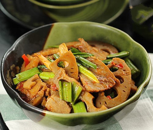 卤藕回锅牛肉介绍 这是一道非常下饭的菜肴,搭配着米饭一起食用是非常的美味的,经过卤制的藕片吃起来更加的软糯,同时卤味十足,非常的诱人,回锅牛肉的香味也是很浓郁,在成品出锅前撒上香菜,在锅中焖10妙左右,使香菜的味道更浓.