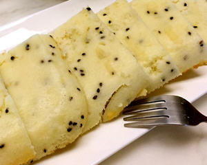 蛋白天使蛋糕,这是用蛋白就可以做的蛋糕,如果有圆形挖空的烤模,烤好的蛋糕就像天使的光环,因此得名。因为只用蛋白,所以糖不能少,加了柠檬汁、柠檬皮、黑芝麻,烤好的蛋糕甜香又有柠檬的香气,加了黑芝麻凸显了天使的白。