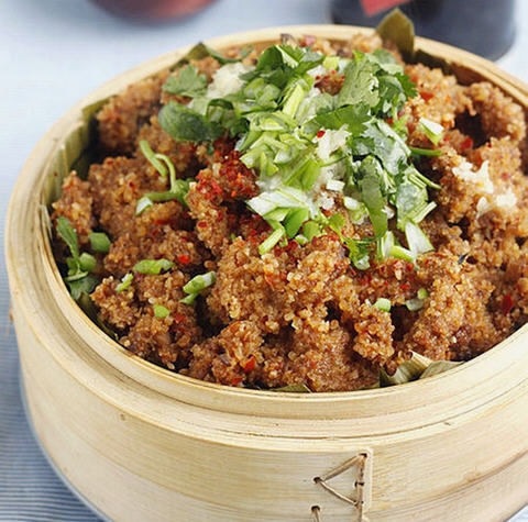 粉蒸牛肉介绍:粉蒸牛肉是从米粉蒸肉的做法中发源而来,一般情况下的粉蒸肉都是用猪肉。但是如果换成牛肉、羊肉来做出很好吃,只是在调味的时候做些改变即可。因为牛肉含铁量丰富,补血和增强免疫力功效显著,所以生活和工作忙碌的上班族们可以学习做粉蒸牛肉,让自己吃得更营养和健康。