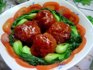 红烧狮子头,是中国逢年过节常吃的一道菜,也称四喜丸子,是取其吉祥之意。这是一道淮扬名菜,有肥有瘦的肉红润油亮,配上翠绿青菜掩映,鲜艳的色彩加上扑鼻的香味,光看就引动食欲,醇香味浓的肉块与汁液,是令人无法抵挡的顶级美味。