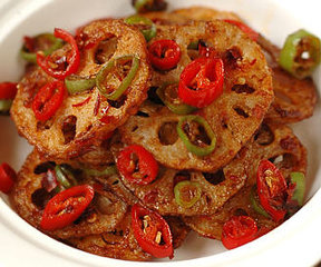 回锅藕片的简单做法讲解。回锅藕片的做法是先把藕片油炸再用调料炒制入味儿,吃着外焦里软香辣软糯又有绵甜的藕香。好吃的回锅藕片怎么做请看地铺行网的教程。