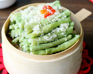 这道粉蒸豆角是用米粉和豆角做成的,这道菜做法非常简单,是根着粉蒸排骨制作而成。豆角要用老豆角,太嫩的豆角蒸出来不好吃。这个菜可以当主食吃,配个清粥,很美的一顿。