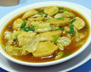 这道咖喱墨鱼丸圆白菜的做法特别简单,也是一道营养非常丰富的家常菜。这道菜的咖喱味,很好下饭,圆白菜炒好以后,倒入压力锅中, 放上鱼丸和一盒好侍多的咖喱块压制20分钟即可。