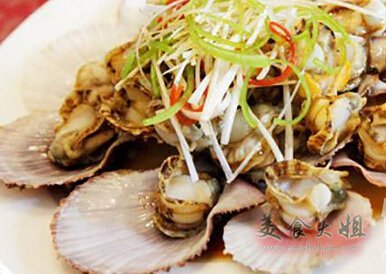 水煮扇贝的做法 第一步、扇贝外壳用刷子刷洗干净,大葱、香葱、红辣椒、青椒切丝。 第二步、取一个小碗,加入青芥辣、蒸鱼鼓油、盐、香醋、蚝油,搅拌均匀。 第三步、锅里加入适量水,加点几料酒烧开后,倒入扇贝煮煮全开熟透后,捞出沥水...