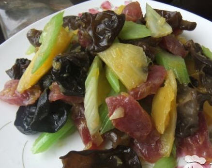 南瓜木耳炒腊肠介绍:南瓜木耳炒腊肠是用南瓜、木耳、腊肠搭配做出来的美味,做出来的菜不仅鲜香美味,营养也是非常的丰富,吃了对健康非常有帮助。另外这道菜的做法也很简单,只要几分钟就可以做出来,这对于生活忙碌的现代人来说也是非常实用的一道菜。下面就为大家详细介绍这样做出好吃的南瓜木耳炒腊肠。