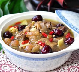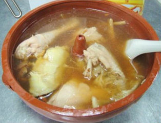 伍元煲土鸡是一道益气养元暖身汤,这里的伍元指的是大枣、桂圆、莲子、芡实、枸杞,与高蛋白低脂肪的鲜美土鸡一起炖制,吃起来鲜美十足,并且还具有很大的养生价值。