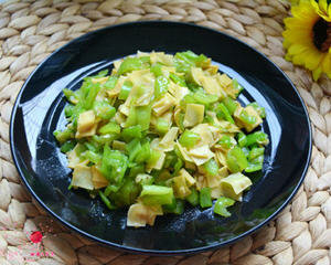 这道素炒尖椒豆皮的做法特别简单,而且营养也非常丰富。这道菜味道微辣,口感清脆,富含维C、铁等微量元素。夏天适当吃些辣的,可以增进食欲。豆皮口感细腻,富含钙和优质植物蛋白质。二者放在一起素炒,味道及颜色搭配上养眼又开胃。