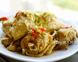 咖哩柠檬鸡,不同于大家习惯的日式或泰式咖哩,用干粉直接腌鸡肉,比较偏向咖哩原产地印度的做法呢。咖哩的香辣,配上柠檬的清香,实在太开胃了。