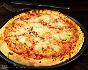这个双椒培根披萨的做法特别,而且营养也非常丰富。做的这个双椒培根披萨味道好,非常美味。以前总觉得披萨简单,所以做的时候也是随心所欲,不管什么东西往饼底上一阵乱倒乱铺,甚至把鸡蛋液直接往上面倒,现在来想,真是瀑布汗啊。