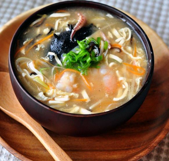 海鲜酸辣汤介绍 海鲜酸辣汤主要取材于鱿鱼,虾仁,海参这三种食材,另外它还添加了胡萝卜、豆腐、鸡蛋等作为辅菜,吃起来非常的美味,鲜美中带着清新,鲜而不腻,很是惹味,它含有十分丰富的蛋白质、氨基酸还有钙质等营养成分,这些营养物质对人体健康有着不可或缺的作用,很是不错的呢。