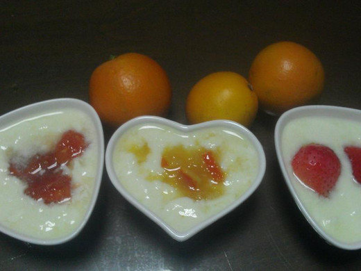 双色米布丁,冰箱总有些吃不完的剩饭,不妨做成的米布丁,天气热,冰冰凉凉的东西最合小孩子的胃口了,吃完又会开始不停的舔汤匙了哦!