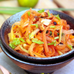 泰式木瓜沙律,这道菜凉拌的口感很像红萝卜呢。配上酸酸甜甜的小青柠和辣椒酱,非常爽口。