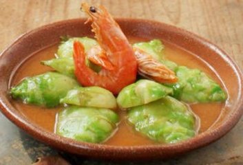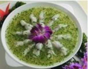 虾烩儿菜,用虾做点缀,万绿丛中一点红,动人春色不须多,煞是喜人,其实这不只是为了好看,虾与儿菜的搭配,那可是相得益彰,翠绿鲜香,汤汁乳白浓稠,营养丰富。另外,鸡皮、海米、香肠、腌肉、火腿、干贝、牛奶、银耳、奶油等都能作原料,来烧虾烩儿菜。