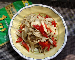这道杏鲍菇炒鸡片的做法特别简单,而且营养也非常丰富。这道杏鲍菇炒鸡片是用杏鲍菇,鸡胸肉和红椒制作而成。杏鲍菇蛋白质含量丰富,能有效提高人体免疫力,杏鲍菇富含膳食纤维,经常食用,可以有效清除血清胆固醇、降低血脂。