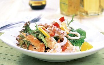 西餐里沙拉作为前菜,对整个套餐有着定位的作用。如果开胃沙拉好吃,那么后面的正餐应该会不错,至少不会太差,因为初始连前菜都做得这么优秀,自然后面也会用心对待,什锦沙拉有了海鲜的存在,成菜更加鲜美,吃上一口如同在海边 。