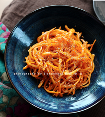 家常炸酱面,味是湖北人,我们这里的炸酱面通常都是用碱面做的,但是每每看到,面馆的环境卫生我就不想吃了,于是我就自己尝试的做的试试,没想到挺简单的,而且我用的是手擀的宽面,非常有劲道哦!