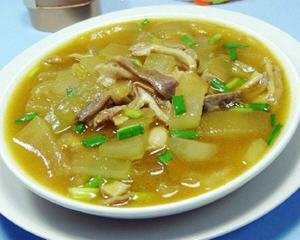 这道咖喱猪肚冬瓜是一道家常菜,而营养丰富,做法也非常简单。这道咖喱猪肚冬瓜是一道很好的下酒菜,还有很多人用猪肚来煲烫,那样营养价值更高。冬瓜性寒,瓜肉及瓤有利尿、清热、化痰、解渴等功效。