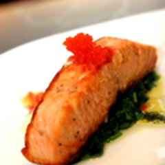 三文鱼是世界名贵鱼类之一,其鳞小刺少,肉色橙红,既可直接生食,又能烹制菜肴,深受人们喜爱。三文鱼生长在加拿大、挪威、日本和美国等高纬度地区的冷水鱼类。但质量最好的三文鱼产自美国的阿拉斯加海域和英国的英格兰海域。三文鱼是西餐较常用的鱼类原料之一。这道菜烹调出来的三文鱼肉质细嫩鲜美,口感爽滑,与蓝纹奶酪汁辛香浓烈的撞击,有着无以伦比的美丽感受。