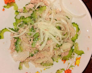 凉拌洋葱鲔鱼山苦瓜,一道不需任何调味料的,制作简单快捷,是新人们最好上手的菜肴了,在炎热的夏季,是一道非常营养的养生菜肴。可减肥、可清热、可解毒等等,你们还在等什么?