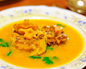 金色牛尾汤,越是到了冬天,越想要餐桌上出现一些让人看了就被感温暖的菜色,除了一定暖烘烘又肥滋滋的h烤料理之外,浓郁得让人满足的汤品也是心头好。这次买到牛尾骨,破例没有做成罗宋汤,试图着捕捉金黄色阳光温暖的感觉,搭配着炖煮到骨肉可轻易分离的牛尾,满满的胶质缠绕在口舌之间,不只美味,也是女生的美肌好料理。