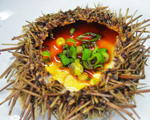 这个海胆蒸水蛋的做法非常简单,而且营养也特别丰富。这个海胆蒸水蛋是凉爽中带有一丝寒凉,海胆吃完了海草和泥沙以后不仅海胆刺更加坚挺,可以作为佐料配食,滋味鲜美香浓。用新鲜海胆黄作汤也是非常地鲜美,加入鸡蛋无论是炒制或是蒸水蛋都是非常惹味的食法。