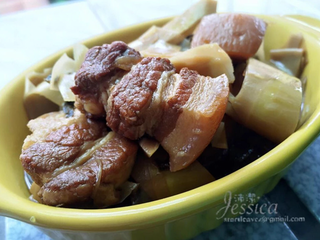 梅干桂竹笋烧肉这道菜可以说是无油料理,因为我利用的是猪肉本身在干煎过程中释出的油脂,油脂也能让桂竹笋更顺口,此外干煎猪肉,也能让猪肉里那不好的味道蒸发掉,让肉质更加鲜美!这道菜具有补肾养血、润燥、开胃健脾、增强机体免疫力等等功效。是美味健康的菜肴哦!