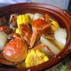 白萝卜补气,螃蟹清热滋阴,性温热的胡椒与姜片,可起到中和白萝卜与毛蟹的寒凉的作用。筒骨具有丰富的钙质,有利于老人小孩补钙。筒骨熬制出乳白色的汤汁,毛蟹熟透后红彤彤的,十分诱人。