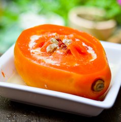 牛奶木瓜是一道甘甜可口,美味十足的美食,它的美味之处在于里面添加了葡萄干,没有加糖,吃起来甜而不腻。在做的时候,蒸制时间不能太长,避免木瓜太软烂,容易走型。