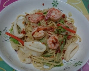 海鲜炒面,简单的炒面,也可以很丰盛哦!主要是看自己对材料的认识程度,今天我做的就是海鲜炒面,里面添加了花枝、虾子、等等食物。色香味俱全、料多、味美,而且还健康养生,是超好吃美食哦!