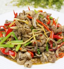 小炒羊肚丝的介绍 广式的这种小炒羊肚丝相比于北方的菜来讲,少了些辛辣,虽有辣椒,可那也只是装饰而已,不过其味道一点也不逊于北方菜肴。