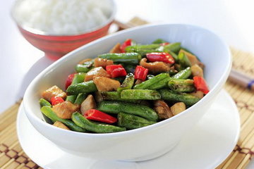 无筋豆炒鸡丁介绍:鸡肉中含有人类所需要的蛋白质等多种营养,同时鸡肉也是最利于人体吸收的肉类,无筋豆比较的难入味,和鸡丁一起炒制,鸡肉的香味多少会渗入到豆中,但是这里的辣椒给这道菜增添了许多的分数,辣椒的辣与鸡肉的香,以及无筋豆的清香形成鲜明对比,吃起来美味极了!